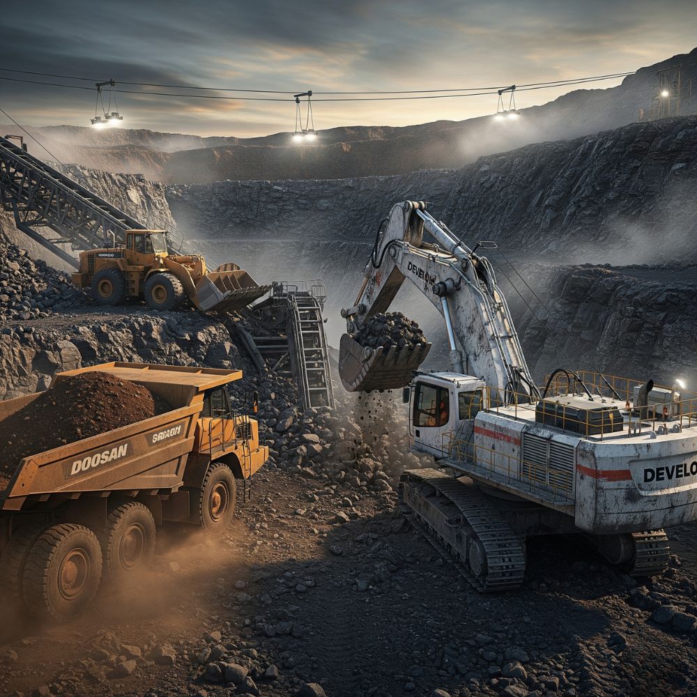 Doosan / Develon – Excavadoras, cargadores y camiones diseñados para minería exigente.